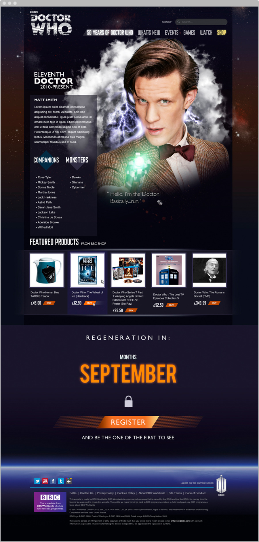 A BBC Worldwide brand, Doctor Who is a globally recognised television figure. To celebrate the programme’s 50th anniversary, BBC Worldwide wanted a website that would regenerate excitement around Doctor Who.