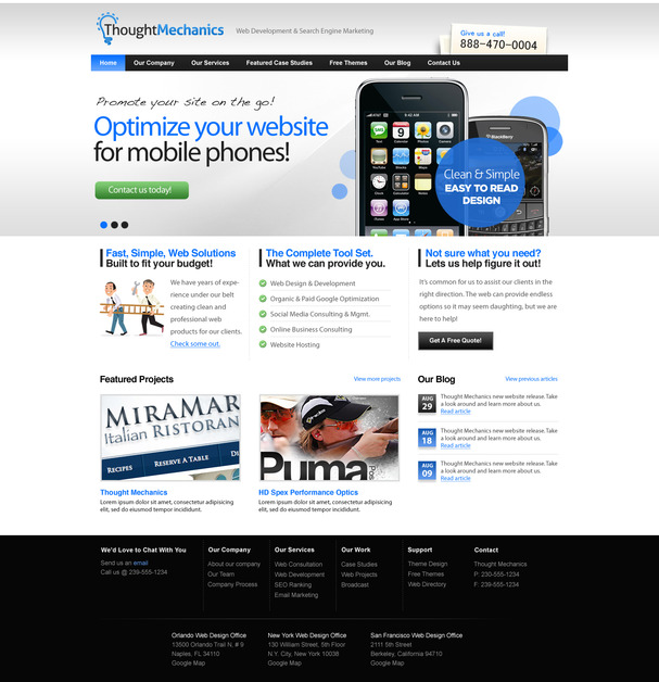 Thought Mechanics LLC is a web development and marketing company located in Atlanta, Georgia. We are a small but passionate team in creating, not only great looking branded designs, but also effective products for improving your web business. Give us a call today, ask for Mike at 888-470-0004, or visit us online by clicking the link below.