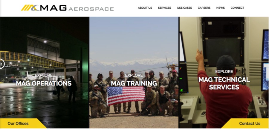 This is a photo of the MAG Aerospace website's homepage designed by ironistic.