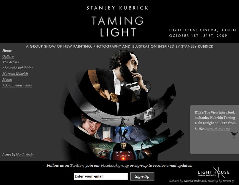 The homepage design of "Stanley Kubrick : Taming Light" show: www.kubricktaminglight.com