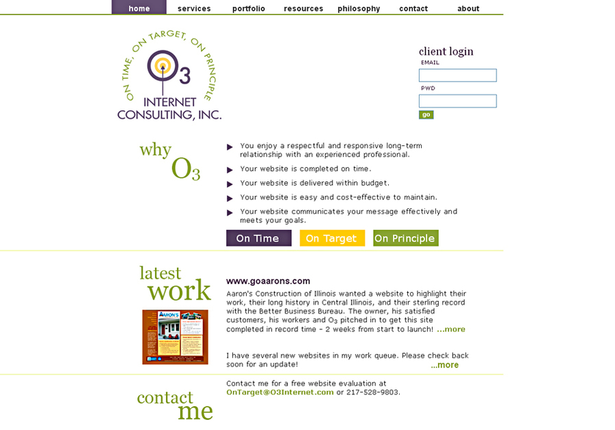 O3 Internet Consulting creates practical, functional and affordable websites. A supportive and predictable planning and project management process saves you time and money. O3 websites are well-organized and written, easy to find through search engines and easy to use. In short, they work. The result is a website that meets your business or non-profit organization goals.