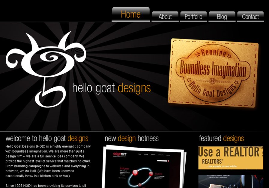 Hello Goat Designs (HGD) is a highly energetic company with boundless imagination. We are more than just a design firm -- we are a full service idea company. We provide the highest level of service that matches no other. From branding campaigns to websites and everything in between, we do it all. (We have been known to occasionally throw in a kitchen sink or two.)
