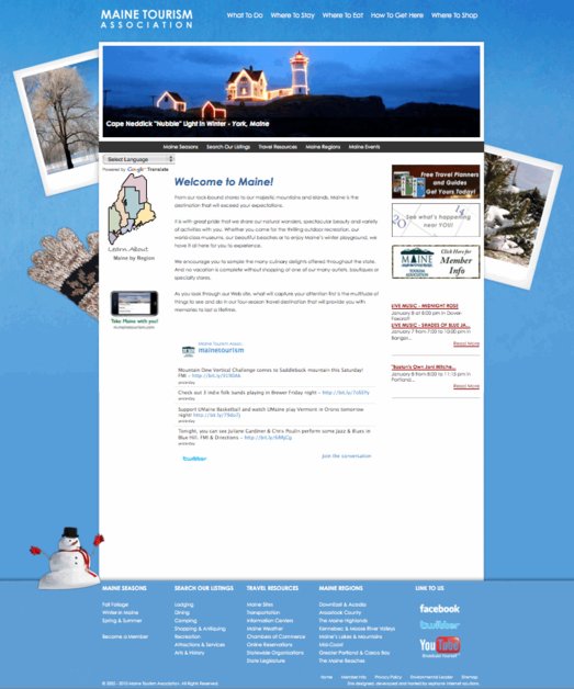 This is a screenshot from our latest homepage redesign of the Maine Tourism Association maintourism.com. It is visually engaging and leads the visitor to the features of the site.