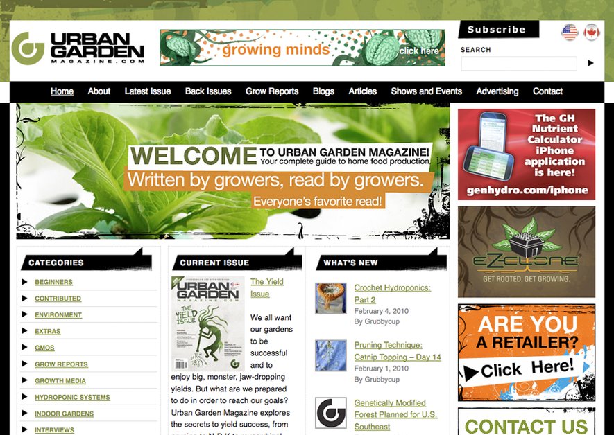 A redesign of the Urban Garden Magazine NA/UK sites. Development: Drift Industries. Design: Henriett Kuti.