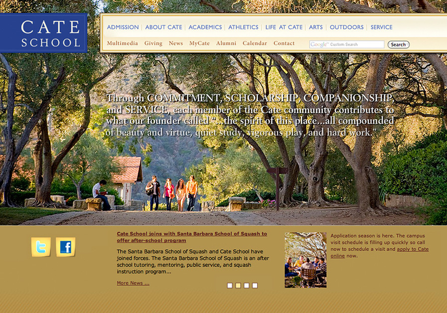 A screenshot from the latest Cate School website - www.cate.org. Our non-proprietary Content Management System enables fully dynamic site control with no monthly fees.