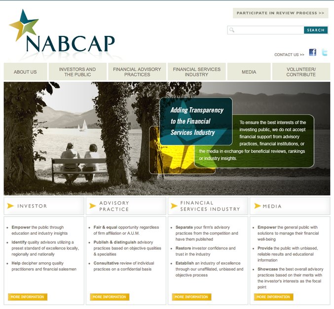 This is a screenshot of the homepage design for NABCAP (National Association of Board Certified Advisory Practices).