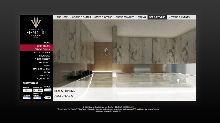 A screenshot of my last project, the website of one of the best hotels in Rome. Based on a very powerful CMS, ModX, it is completely manageable by the client. It makes no use of Flash, for better results on search engines. Animations are scripted in jQuery.