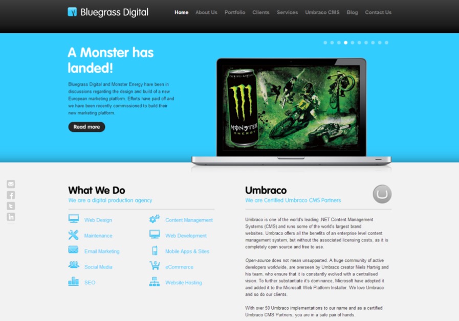Get in touch with us today to request a quotation for any website design or development work you may require, or simply drop us an email to say hi at hello@bluegrassdigital.com.
