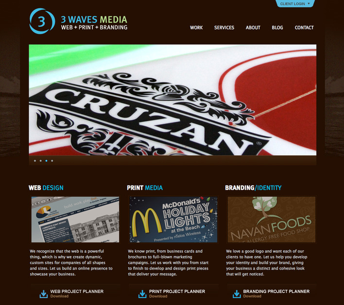 3 Waves Media is a full-service design firm located at the oceanfront in Virginia Beach, Virginia. Our team of designers and specialists are dedicated to making sure your needs are met. We provide creative web design, print communications and identity solutions for companies and individuals across the country.
