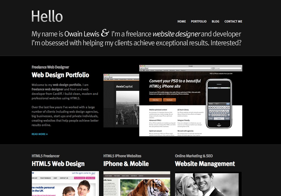 I am a passionate freelance web designer who works with HTML5/CSS3, Advanced Javascript, iPhone, Python and PHP. I can offer an all round skill-set that separates me from your average freelancer being equally adept at Design, HTML5, Web Development and SEO. I have worked with clients from all over the world.