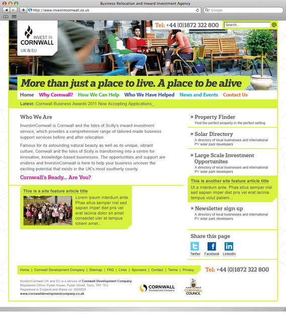 This is a screenshot of a recent website rebuild for Invest in Cornwall UK. The 400 page site is managed by the client using our easy to use point-and-click editor (CMS) and hosted and maintained by us.