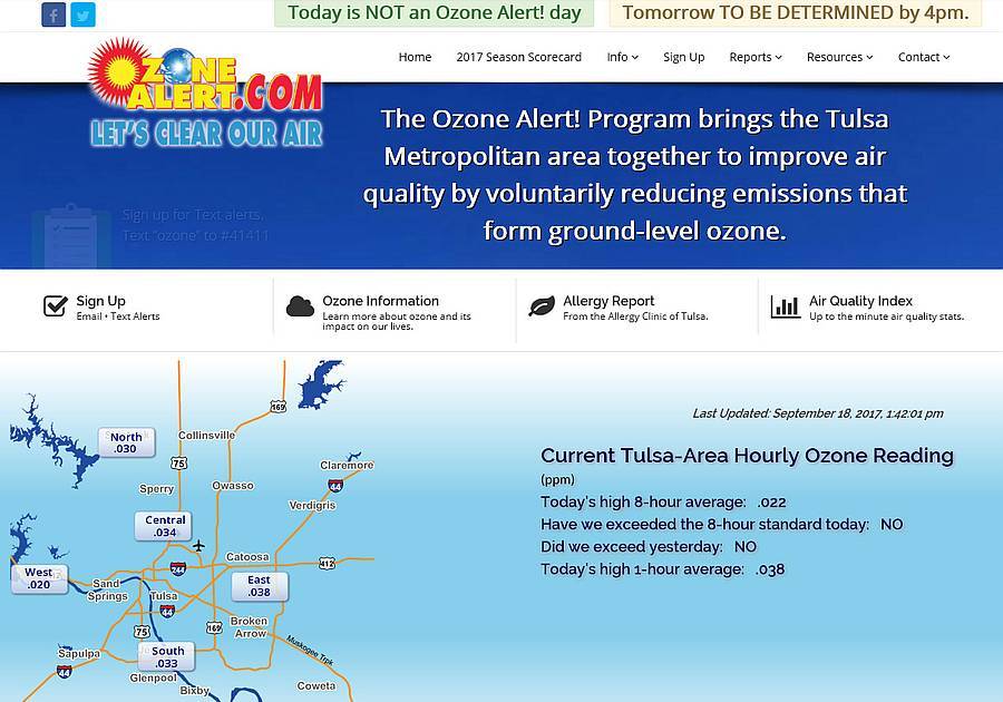 This is a screenshot of the redesign of Tulsa's ozoneAlert.com web site.