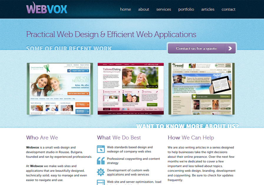 At Webvox we make web sites and applications that are beautifully designed, technically solid, easy to manage and even easier to navigate and use.