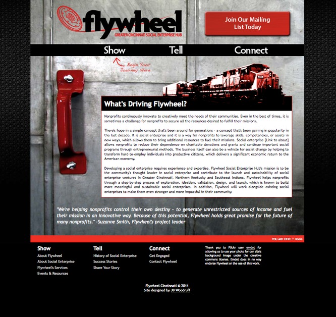 This Flywheel's homepage. It's a non-profit social enterprise company in Cincinnati that I have had the pleasure of designing for.