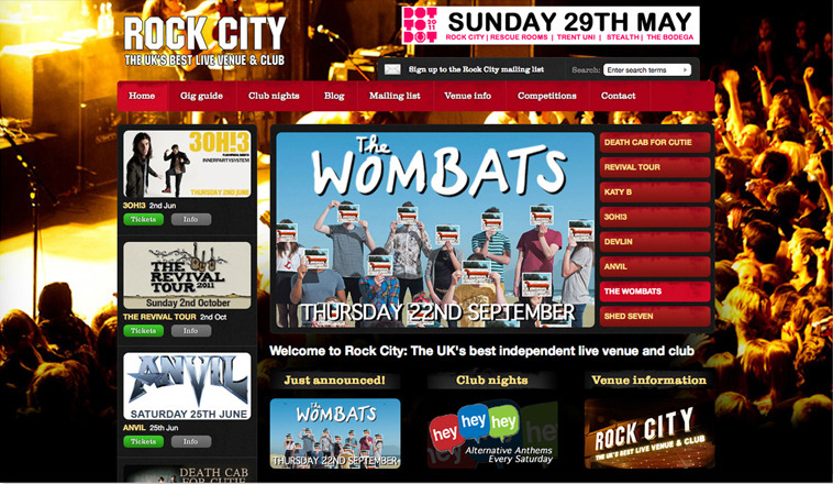 A screenshot from our Rock City website. Rock City is one of the UK's leading live music venues and club.