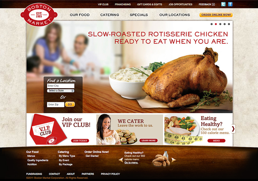 Homepage of recently launched Boston Market website.