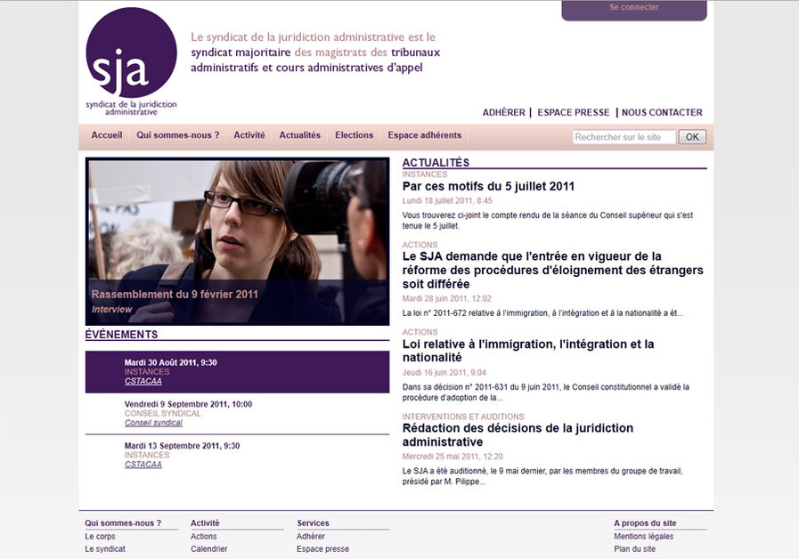Screenshot from the website redesign of the Syndicat de la juridiction administrative (http://www.lesja.fr).