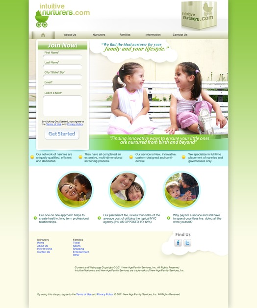 This is a screenshot of our latest website project for Intuitive Nurturers - a company that helps families find nannies and caretakers