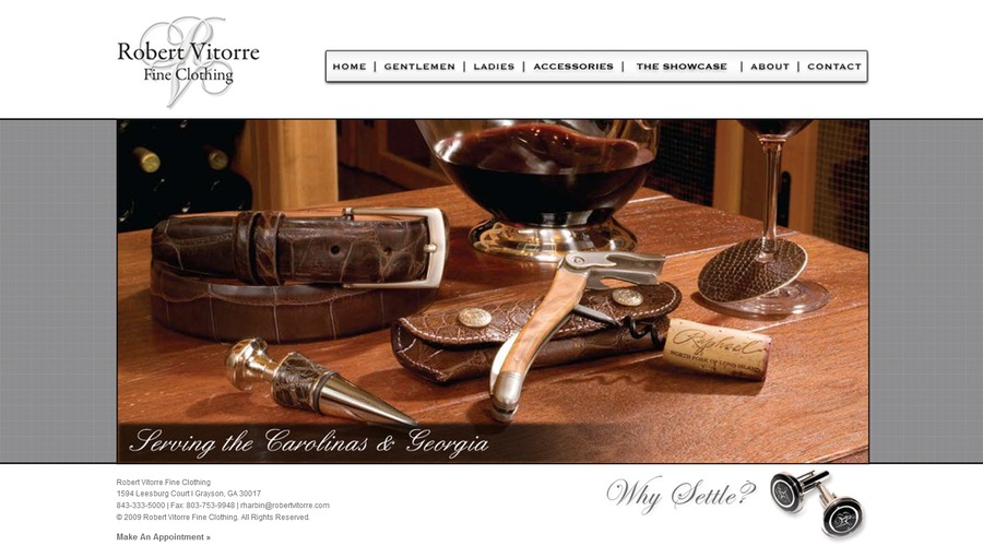 This is a screenshot from a website Ranking Carolina designed for Robert Vitorre Fine Clothing.