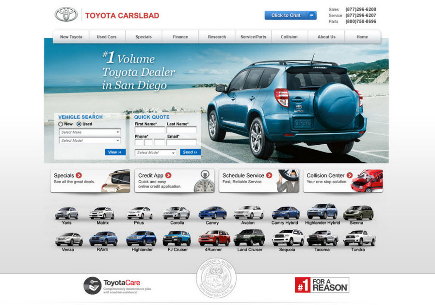 Screenshot of our work for for Toyota Carlsbad - Website Design, SEO and Pay-Per Click client.