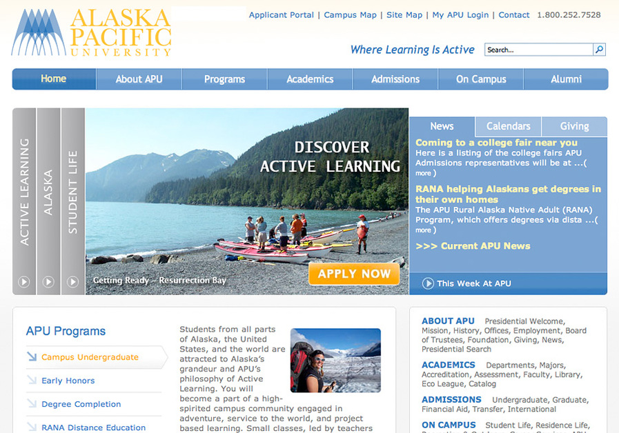 This is a screenshot from a redesign of www.alaskapacific.edu completed by the Sundog Media team.
