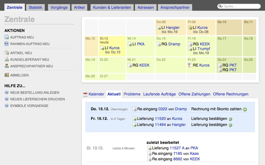 Bildschirmfoto eines Warenwirtschaftssystems für einen unserer Kunden.