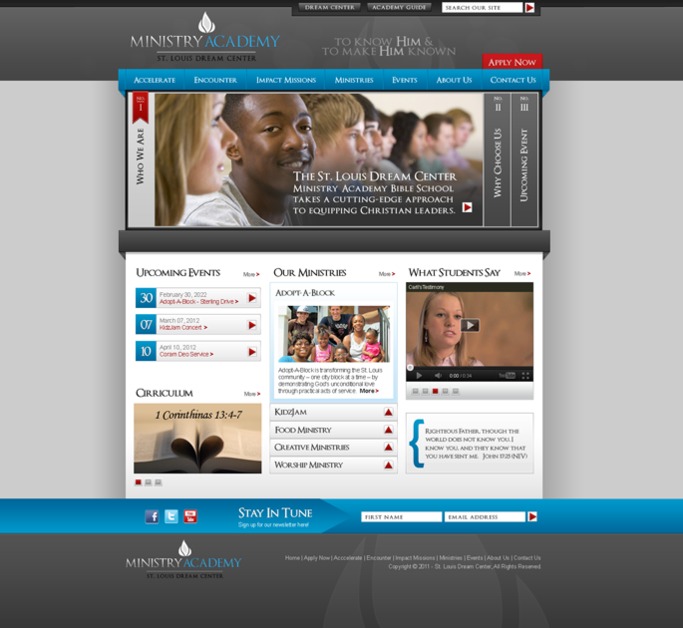This screenshot is a new design for our client St. Louis Dream Center's Ministry Academy.
