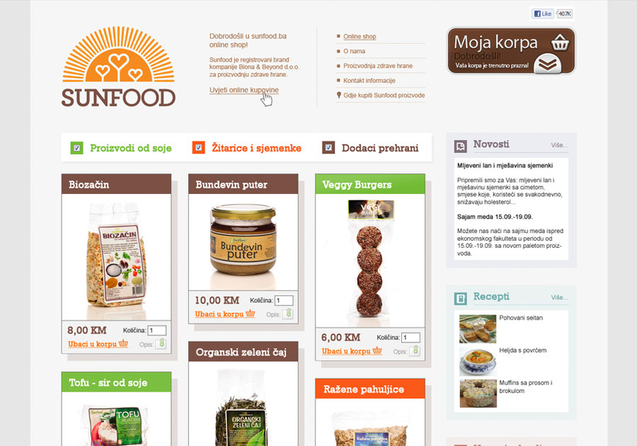 This is a screenshot of web-shop from www.sunfood.ba, organic food producer from B&H. Our portfolio can be found at www.pauza.ba/portfolio