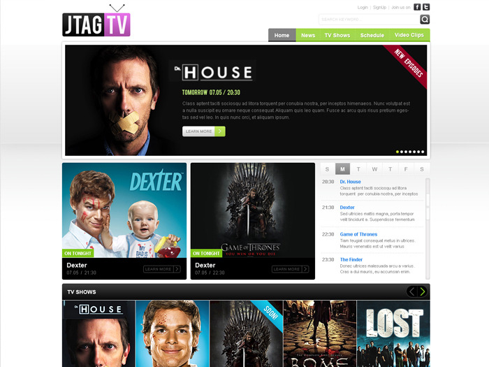 JTAG TV is an elegant video centric template , we created for Joomla 1.5. It has some custom YouTube plugins as well as customized slyle sheets.