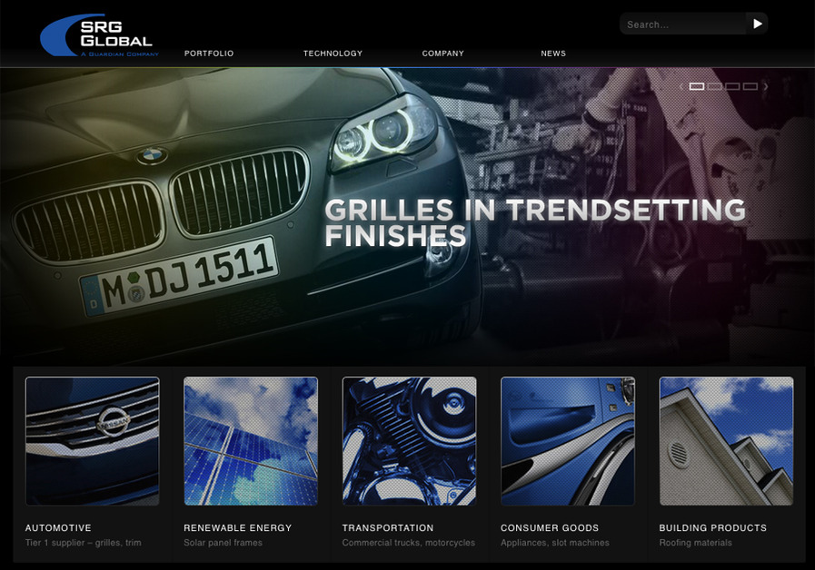 This is the home page of SRG Global, the worlds largest international chrome plating manufacturer.
