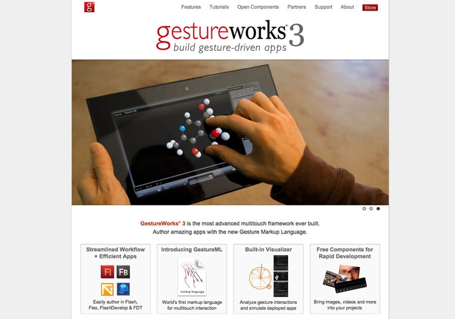 A screen shot of the GestureWorks multitouch software website and store.