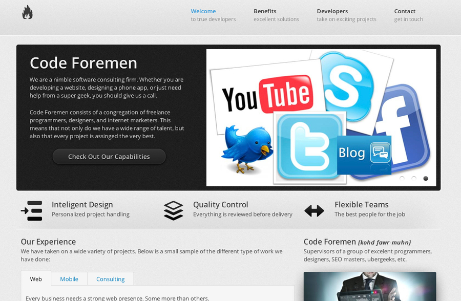 Code Foremen consists of a congregation of freelance programmers, designers, and internet marketers. This means that not only do we have a wide range of talent, but also that every project is assigned the very best.
