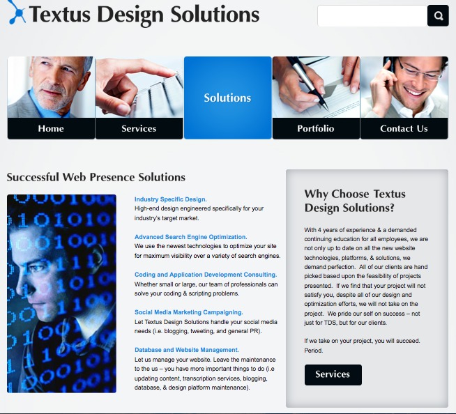 The is a screenshot from our company's website textusdesignsolutions.com.