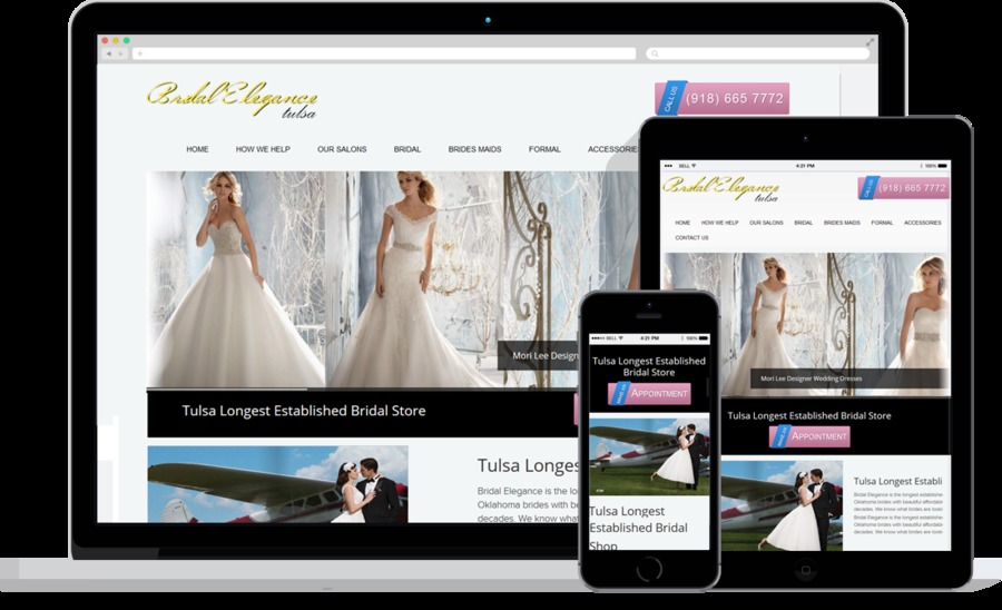 Bridal Elegance had an existing Joomla site that the owner could not update when new styles arrived. We created a new site with CMS that allows her to manage designers and dress styles.