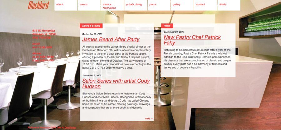 This is a screenshot from the website we designed for Blackbird, one of Chicago’s most respected modern fine-dining establishments.