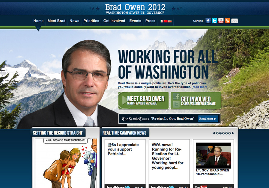 This is a screenshot from a project we just finished for Wa State Lt. Governor Brad Owen. See the full website at www.bradowen2012.com