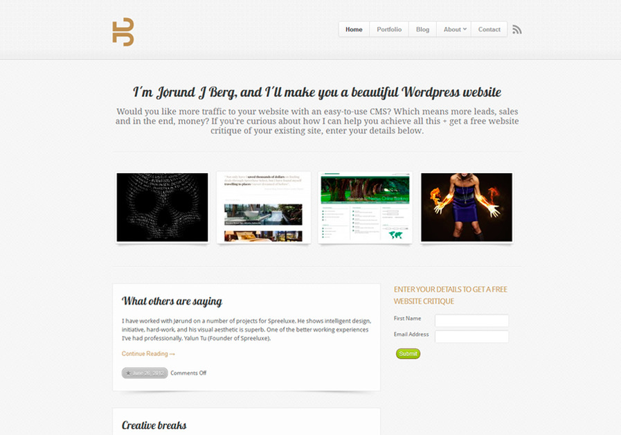 I make Wordpress websites for my clients, with a focus on increasing traffic to their sites, generating leads and sales. My vision is to make sites that score high on usability and reaching a specified result, while at the same time look visually appealing.