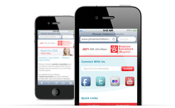 Phoenix Children's Hospital sought to create a content-rich mobile Website for use on smartphones providing users with streamlined browsing capabilities and quick, easy access to the information and services patients, visitors and employee candidates need while on the move.