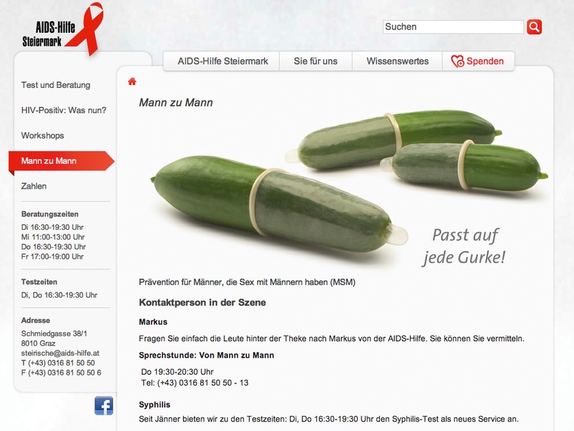 Screenshot of the homepage for the Styrian AIDS help organisation