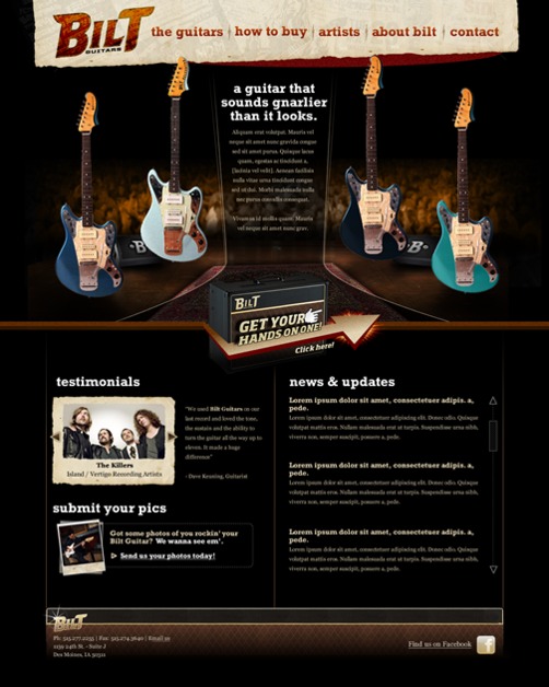 Homepage mockup of BiltGuitars.com