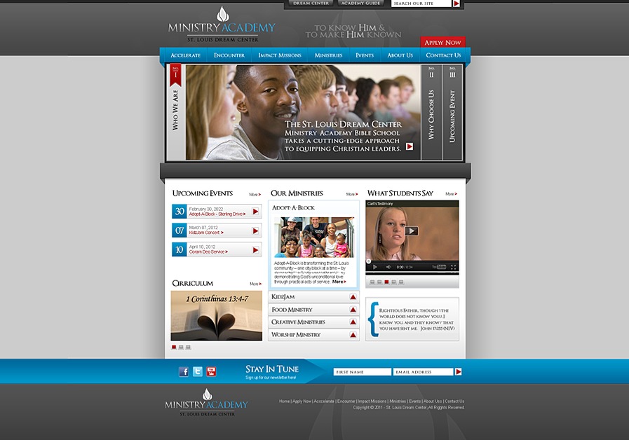 This is a screenshot of the new website we are designing for the St. Louis Dream Center; Dream Center Ministry Academy