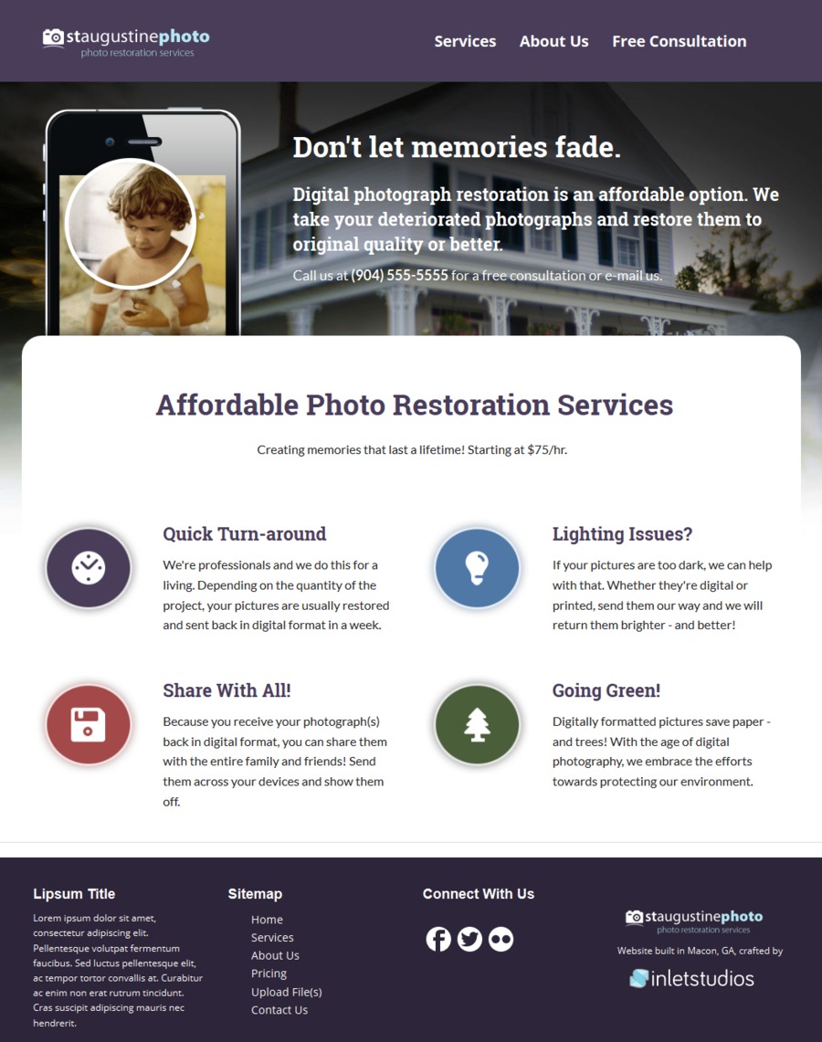 Serving a popular art and photography studio in Florida, we helped create their vision of expanding their photo restoration services to a broader audience. Built on top of an open-source content management system, the website needed to display their services, pricing, a contact form, and a file upload system for users to submit their pictures.
