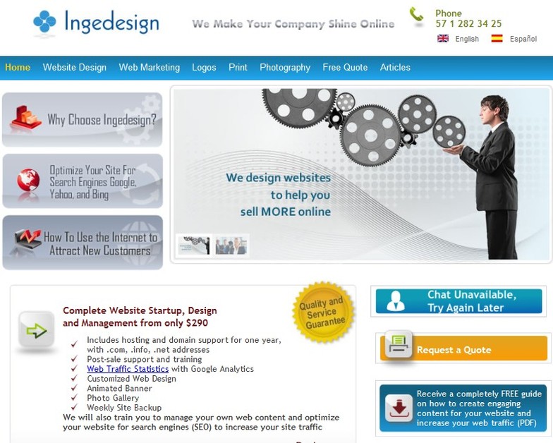 We are a talented bilingual website design firm in Bogotá, with substantial experience in web design, graphic design, logo design, SEO, social media and e-mail marketing, hosting, training, support, offshore/outsource develpment, and more. Our clients have come from Colombia as well as all around the world, and have been extremely satisfied with their dynamic, atractive, and technologically advanced websites and our uncompromising commitment to the highest quality at the best value.