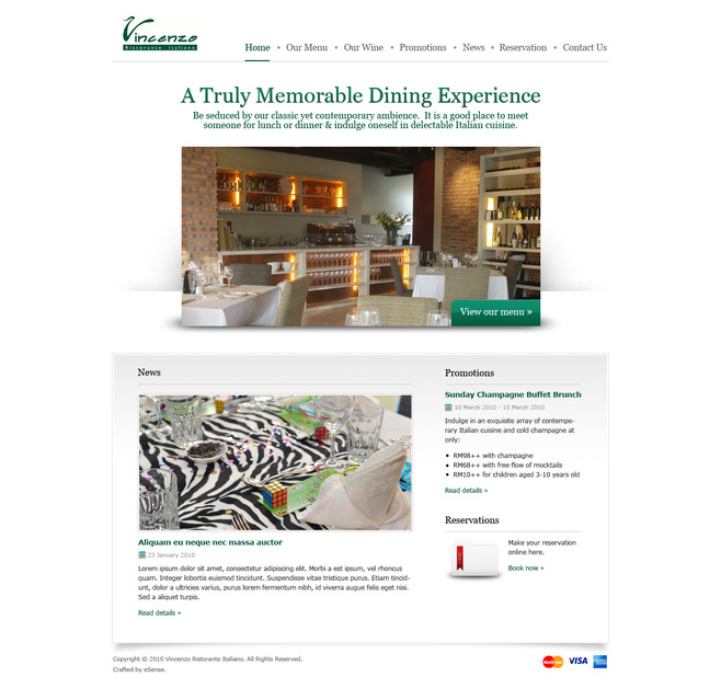 A screenshot of website design for Vincenzo Ristorante Italiano, an Italian restaurant. Using WordPress as the CMS.