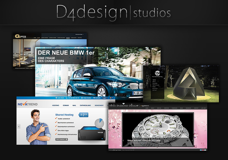 D4design Studios, ist keine gewönliche Design Firma aus Zürich. Wir sind spezialisiert in Webdesign, Web-Entwicklung, Hosting, Mobile Apps, Logo Design und Online Marketing.