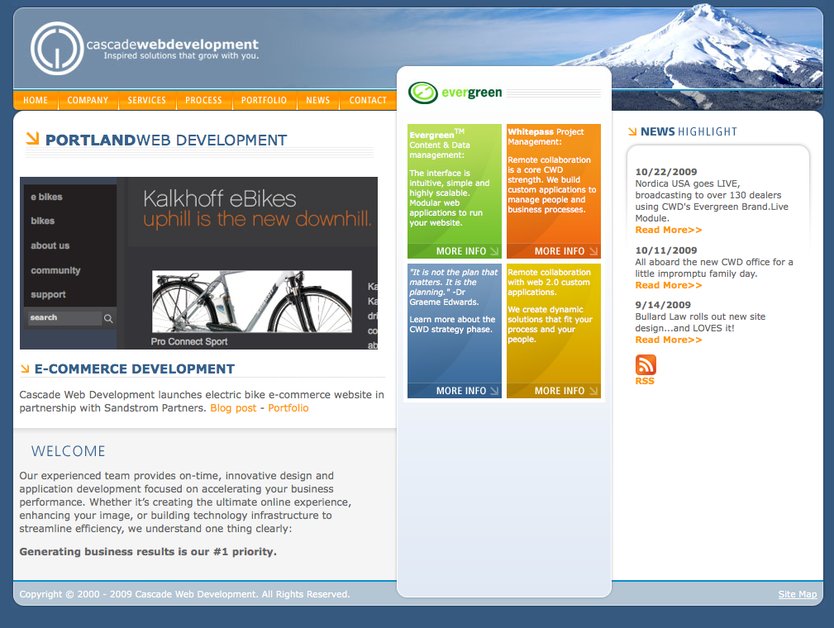 This is the home page for our company, Cascade Web Development, a full service web agency.