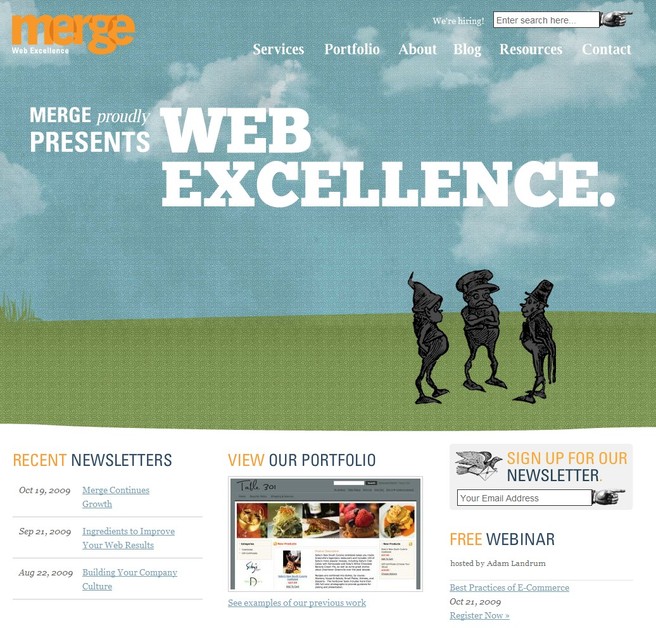 Merge offers Web Excellence by partnering with your company as your outsourced web division. From internet marketing strategy to web design and plan execution, we're your partner. We don't do large upfront project prices. Merge works on long term monthly retainer as a partner and your extended web division--for about the same price as one full time employee. Contact us today.