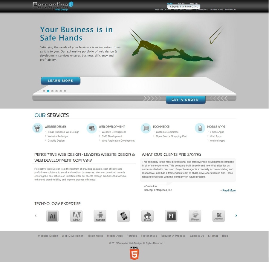 As an organization, PerceptiveWebDesign has created bench-marks in small business web design and development, custom eCommerce, iPhone, iPad and Android services. We help businesses leverage their full potential and create a niche for themselves. With a track-record of highly satisfied clients PerceptiveWebDesign is a leading business solution provider for small companies, start ups and Fortune 500 companies.