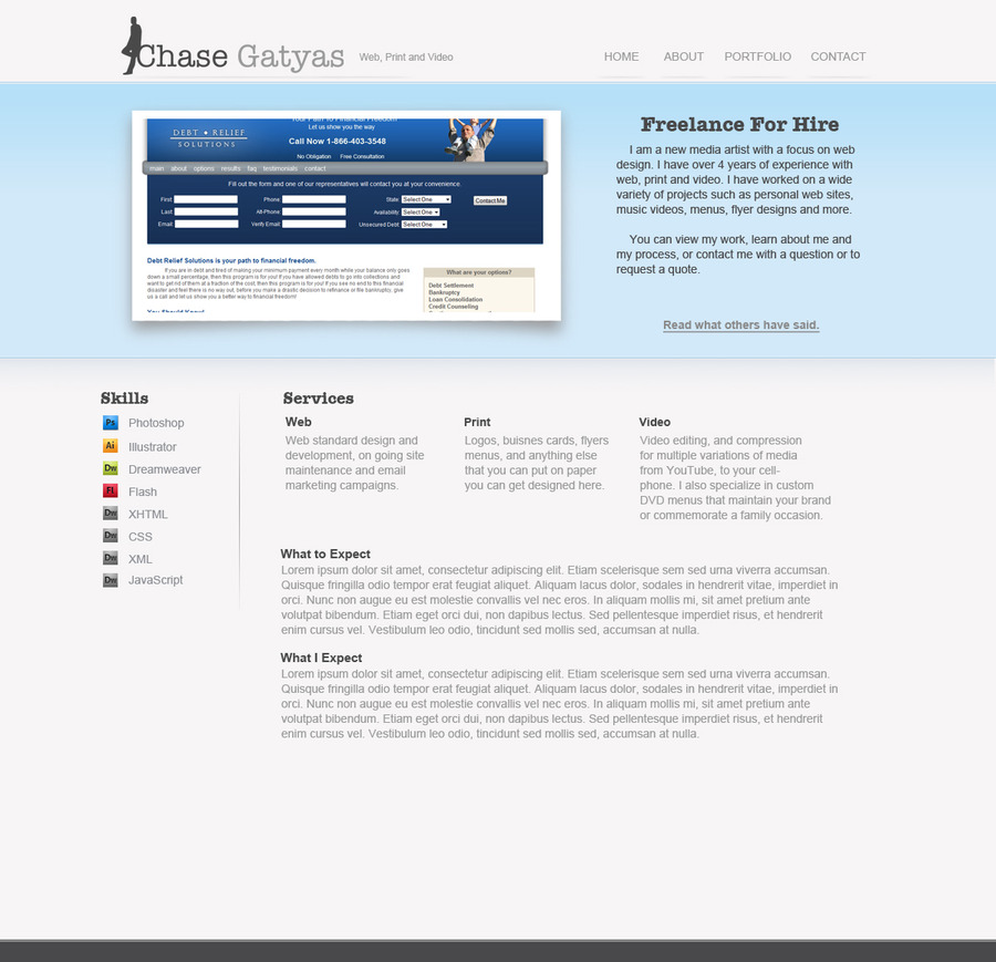 I am a new media artist with a focus on web design. I have 7 years of experience with Web, Print and Video. I have worked on a wide variety of projects such as web sites, music videos, menus, flyers, product packaging designs and more.