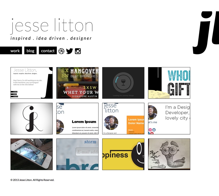 This is a screenshot from my latest personal brand redesign of jesselitton.com. I used Dribbble's API to pull the portfolio images in.